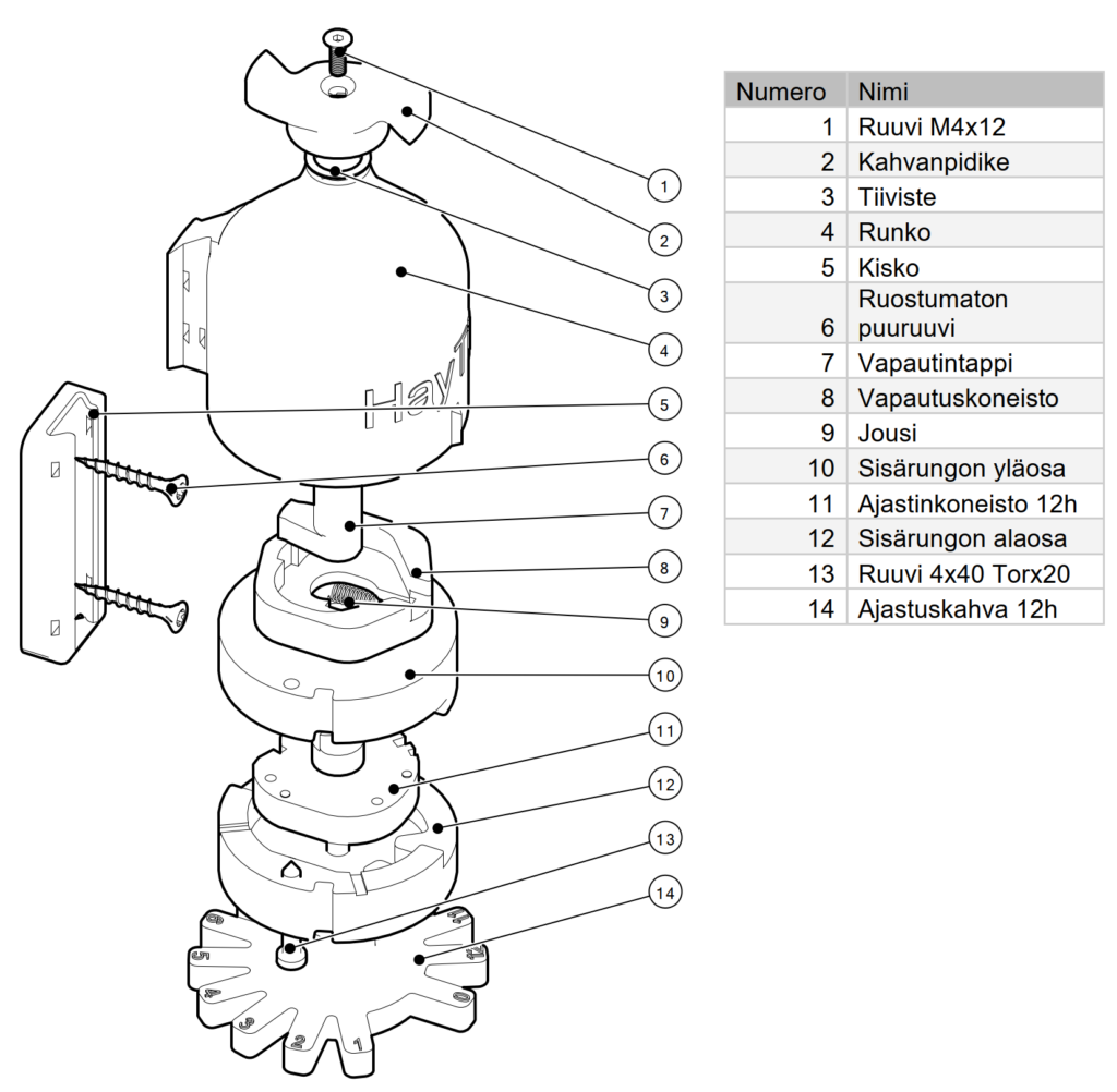 HayTime -ajastimiin on saatavilla erikseen kaikki ajastimen osat sekä ohjeet varaosien vaihtamiseen.