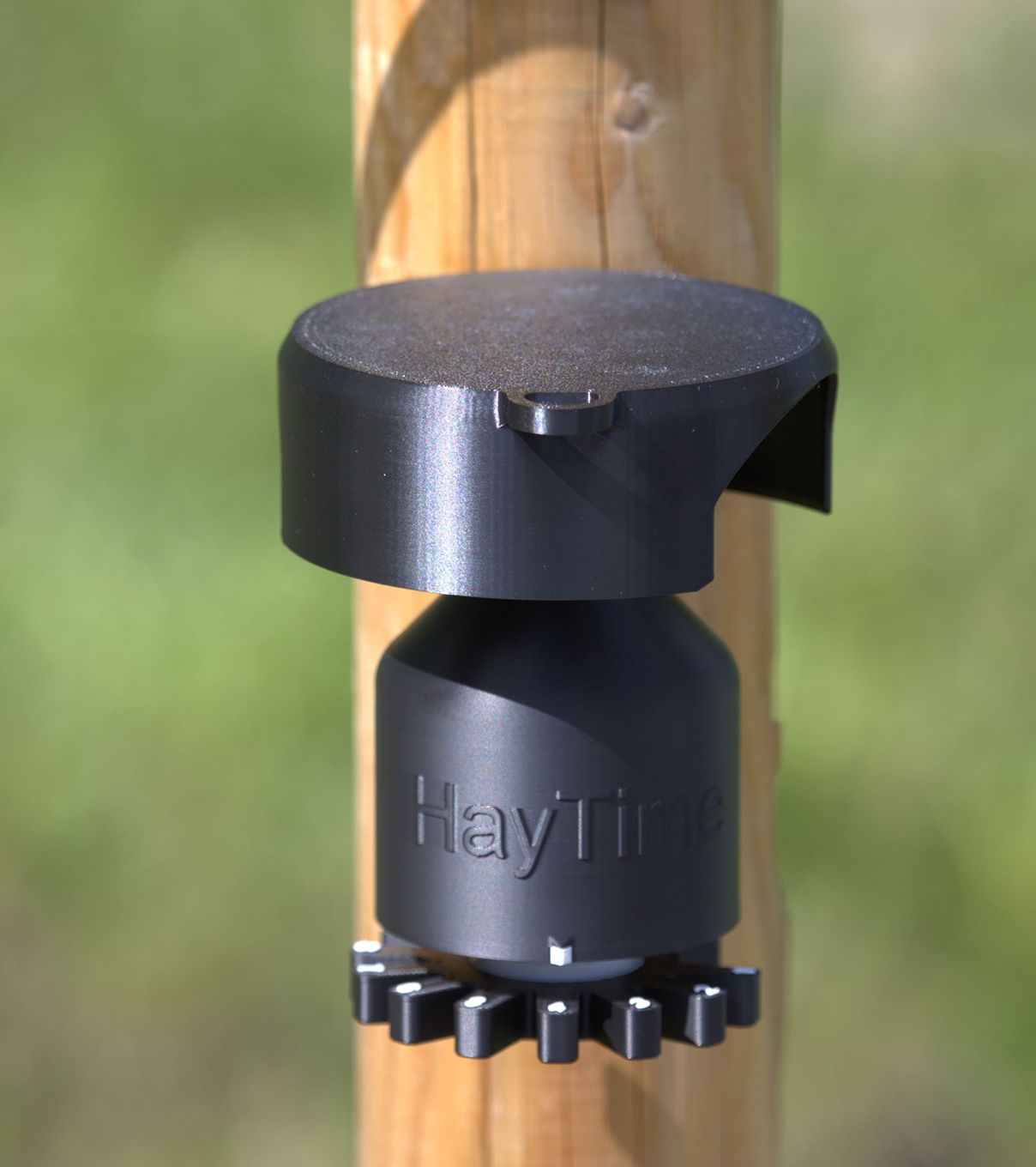 HayTime -ajastimen optimaalisen toiminnan takaamiseksi suosittelemme suojaamaan ajastimen ulkokäytössä. Tämä erityisesti HayTime -ajastimeen suunniteltu suoja suojaa ajastinta vaihtuvissa sääolosuhteissa siten, että ajastinta on silti helppo käyttää suojan ollessa paikoillaan. Suojan voi halutessaan kiinnittää HayTime -ajastimen kiskoon nippusiteen avulla, jolloin suoja lukittuu paikalleen. Lisäksi suojassa on paikka sähkölangalle, jonka avulla ajastin voidaan suojata myös hevosilta.